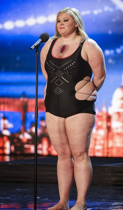 Sở hữu thân hình có phần ngoại cỡ nhưng thí sinh Emma Haslam vẫn tự tin diện áo tắm hai mảnh và thực hiện những động tác mua cot vô cùng điêu luyện và uyển chuyển trong cuộc thi tìm kiếm tài năng của Anh - Britain's Got Talent năm 2014.